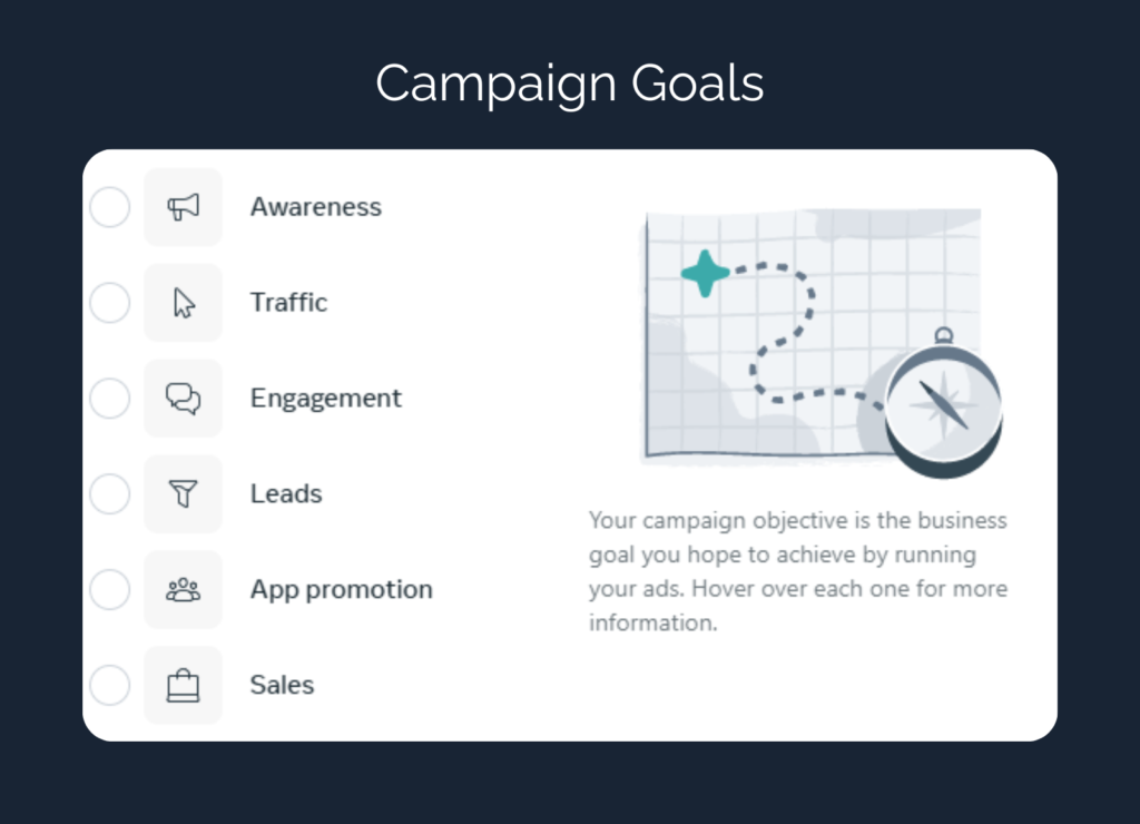 Meta offers highly detailed goal-setting options to promote your business in a variety of ways.