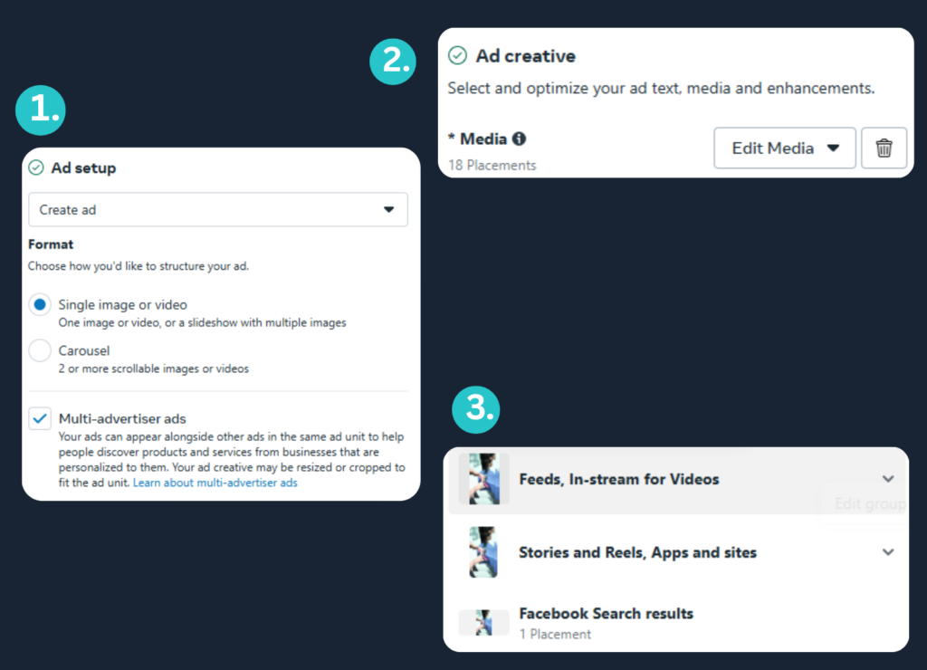 During the ad creation process, Meta clearly displays where your ads will appear, along with visual previews. If there are any issues with your ad such as errors in the copy or formatting you’ll be notified instantly, allowing you to make corrections and ensure your ad is ready to publish without complications.